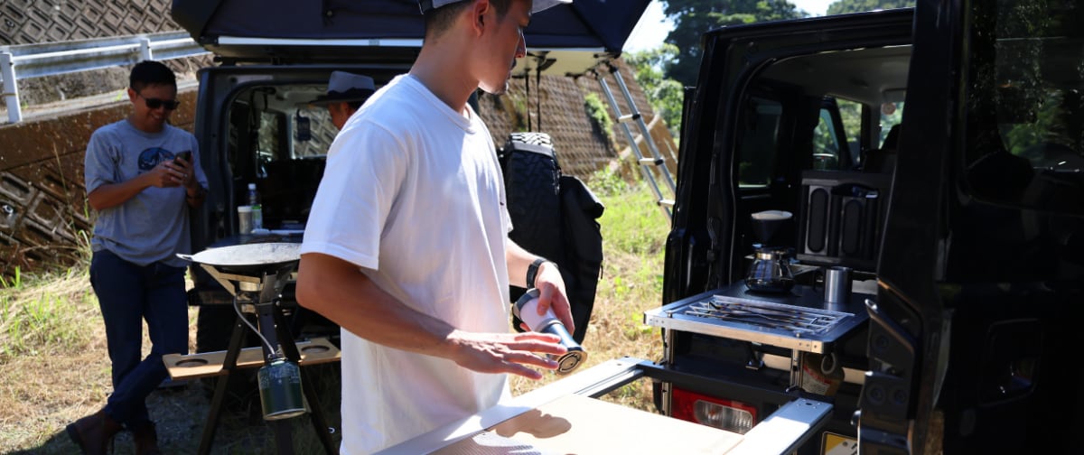 お気に入りの場所に車を停めたら、すぐに自分だけのスペースが作れる。スライドテーブルがあれば、準備に手間取らず、「今この瞬間」を逃さない。