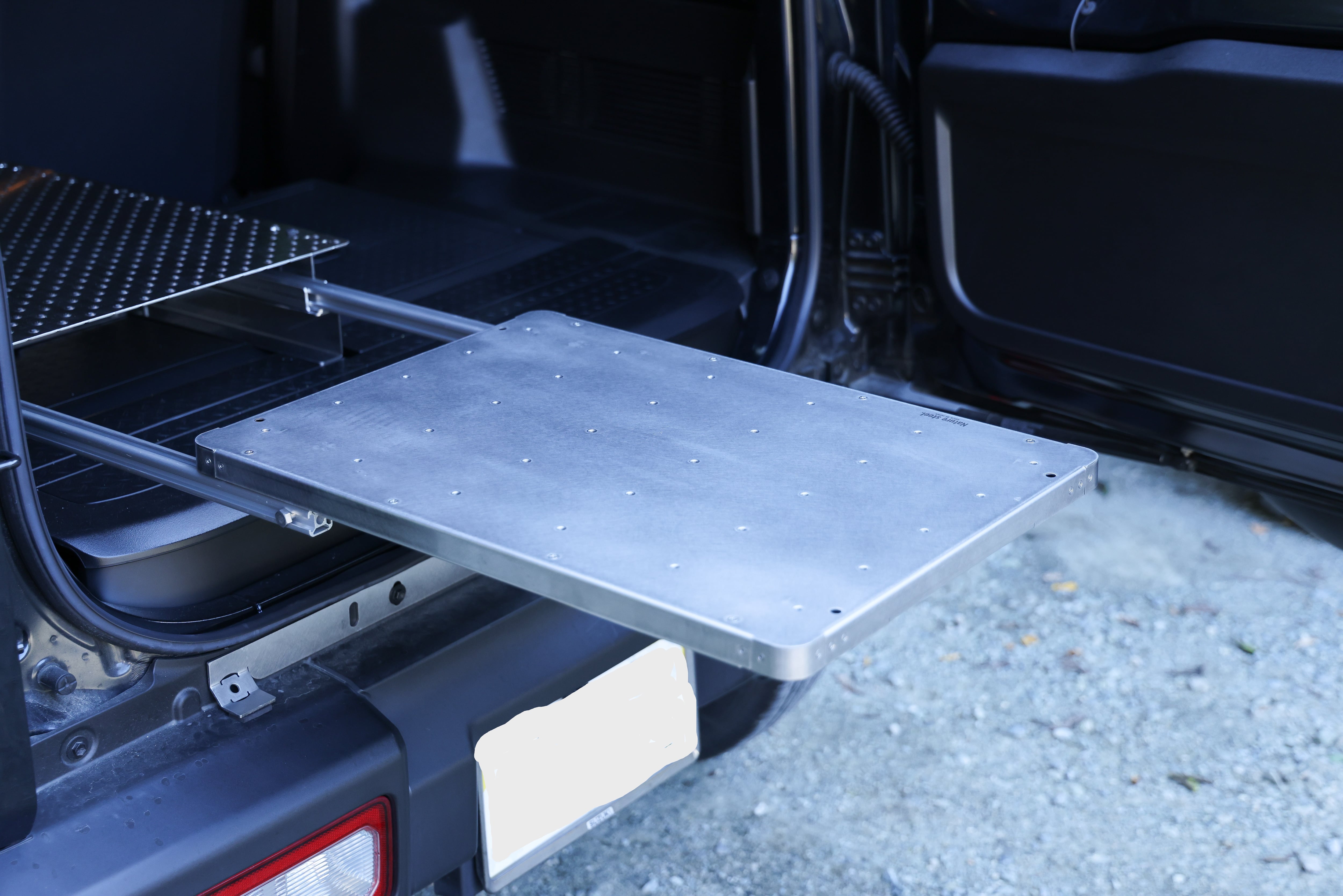 テーブル本体は工具不要(ストッパーボルトの手回し)で着脱可能。車内での使用、取り外してフィールドテーブルとしての使用など、スタイルに合わせて素早くセットアップ可能です。