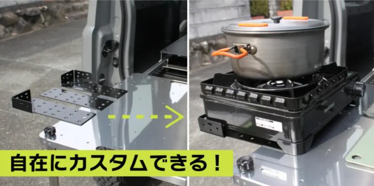 天板フチには多数のM5ネジ穴を標準装備 。ステーやフックなどを追加し、自由にDIYカスタムが楽しめます 。